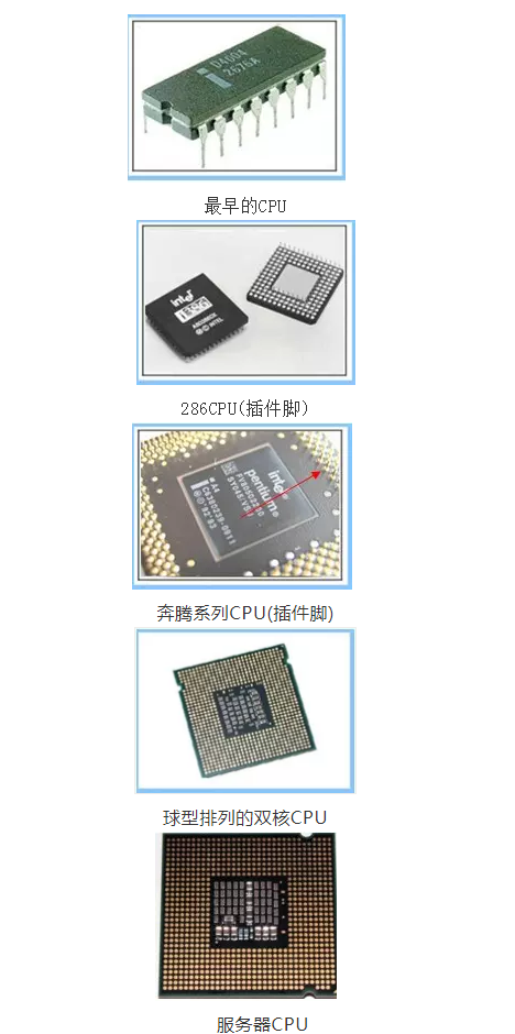随着电子产品技术的不断更新,电子芯片的结构和安装方式也在不断的改善和变革。其发展基本上是从具有插件脚的零部件发展到了采用球型矩阵排布焊点的高度密集集成电路???。从下图可以看到零部件的发展历程: