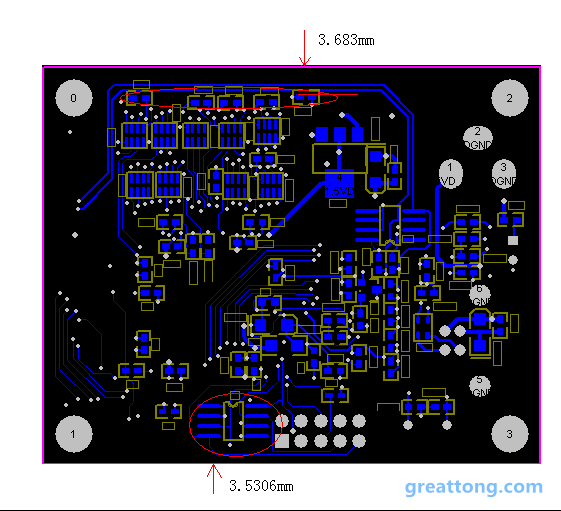 6、关于丝印和标识:请将器件型号隐藏。尤其是器件密度高的电路板。否则,眼花缭乱影响找到焊接位置。如下图: