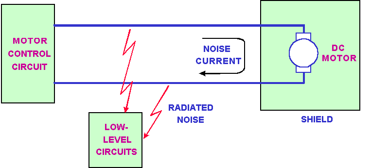 噪音会藕合到电路内的较明显方式之一是透过电导体(传导方式)。假如信号线经过一个充满噪音的环境,信号线将受感应拾取噪音信号并传至电路的其它部分,例如电源供应器的噪音就会经由电源线而藕合至电路,如图3所示。